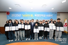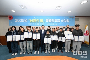 (남원=타파인) 이상선 기자 = 춘향장학재단(이사장 최경식)은 지난 17일 남원시청 회의실에서 ‘2025년 남원의 별 특별장학금 수여식’을 열고, 예체능 분야에서 우수한 성과를 거둔 지역 인재 16명에게 장학금을 전달했다고 밝혔다. ‘남원의 별 특별장학금’은 남원 청소년의 재능과 잠재력을 지원하기 위해 마련된 대표 장학사업으로, 2023년부터 총 21명에게 약 1억 2,000만 원이 지원된 바 있다. 올해 선정된 장학생은 체육 13명, 예술 3명으로 구성됐으며, 한국예술종합학교에 재학중인 정건세 학생(2025 베를린 탄츠올림프 현대무용 금상)을 비롯해 전국체전·전국소년체전 수상자, 국제대회 우승자 등 각종 무대에서 두각을 나타낸 학생들이 ‘남원의 별’로 이름을 올렸다. 최경식 이사장은 “남원의 별은 우리 지역의 자랑이자 미래의 희망을 상징한다”며, “여러분이 각자 분야에서 더 크게 성장해 남원의 이름을 널리 알려주길 기대한다”고 격려했다. 춘향장학재단은 앞으로도 지역 청소년들이 학문·예술·체육 등 다양한 분야에서 잠재력을 발휘하도록 장학 사업을 지속 확대할 계획이다. 2025년 ‘남원의 별’ 특별장학생 명단은 ◆ 국내·국제 메이저 대회 수상자 정건세, 2025 베를린 탄츠올림프 현대무용 금상 안해천, 제106회 전국체육대회 골프 남자일반부 개인전 1위 김윤서, 제106회 전국체육대회 여자축구 대학부 단체전 1위 조민혁, ITF 알마티 국제주니어테니스 대회 1위 조세혁, ITF 산토도밍고 국제주니어테니스 대회 2위 이수빈, 2025 남원코리아오픈 롤러 경기대회 E15,000M 1위 이정민, 제37회 문체부장관배 전국 시도대항 인라인스피드대회 계주 3000M 1위 권가희, 2025 주짓수 국가대표·청소년대표 선발전 3위 ◆ 제54회 전국소년체육대회 수상자 유윤아, 높이뛰기 15세 이하부 1위 문예원, 높이뛰기 12세 이하부 1위 양주원, 수영 12세 이하부 접영 100m 2위 김진홍, 테니스 개인전 2위 송예담, 롤러 12세 이하부 1000m 개인전 3위 김도원, 복싱 15세 이하부 라이트웰터급 3위 ◆ 전통·예술 분야 수상자 김은재, 제51회 대한민국 춘향국악대전 판소리 고등부 대상 정재현, 제28회 목사고을 나주 전국국악경연대회 학생부 종합 최우수상