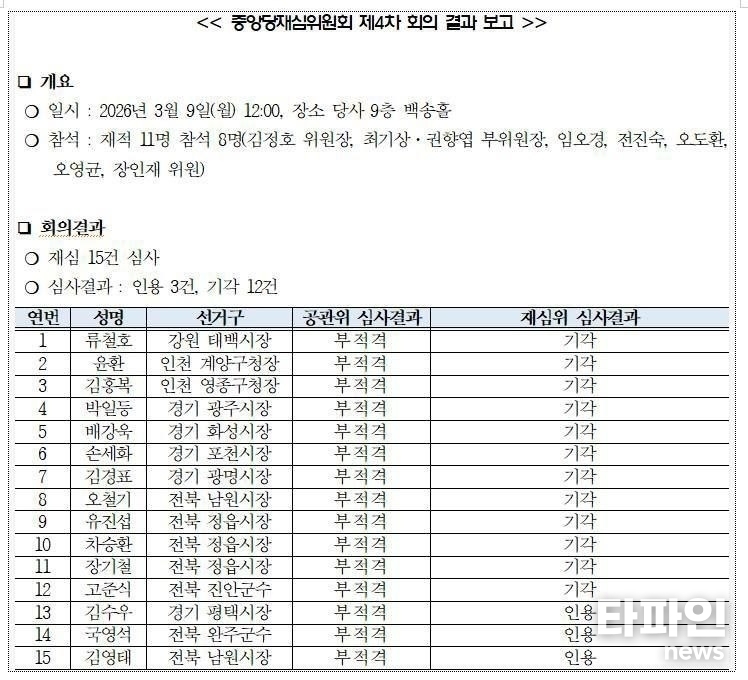 정치권 관계자는 “재심 결과로 경선 구도가 다시 열리면서 후보 간 경쟁이 더욱 격화될 것으로 보인다”고 말했다. [데스트칼럼] 김영태 의장의 순수함이 남긴 울림...정치는 결국 사람