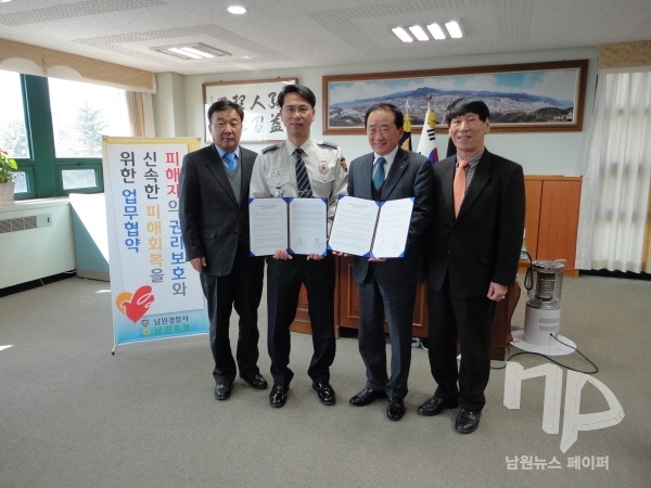 남원경찰서와 남원축협이 15일 범죄피해자 지원을 위한 업무협약을 맺었다.