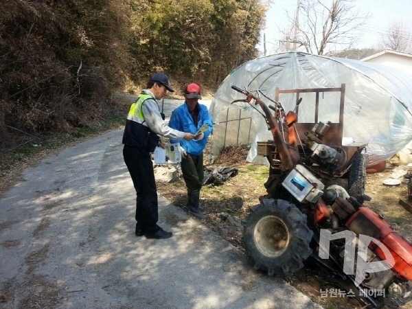남원경찰서(서장 박훈기) 덕과파출소(소장 김대봉)가 농기계 사고 예방을 위한 주민상대 홍보 활동을 펼치고 있다.