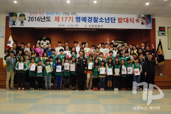 남원경찰서는 28일 용성·교룡·월락초등학교 학생 34명과 지도교사 3명으로 구성된 명예경찰소년단을 위촉하고 발대식을 가졌다.