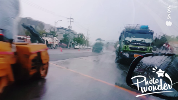 도로포장의 경우 비오는 날은 수막현상이 발생할 수 있어 우중 아스콘 타설공사는 하지 않는 게 업계의 관행이다.