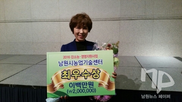 남원시농업기술센터가 2일 서울 코엑스에서 열린 '2016년 강소농·경영지원분야사업성과 보고회'에서 최우수 기관상을 수상했다.