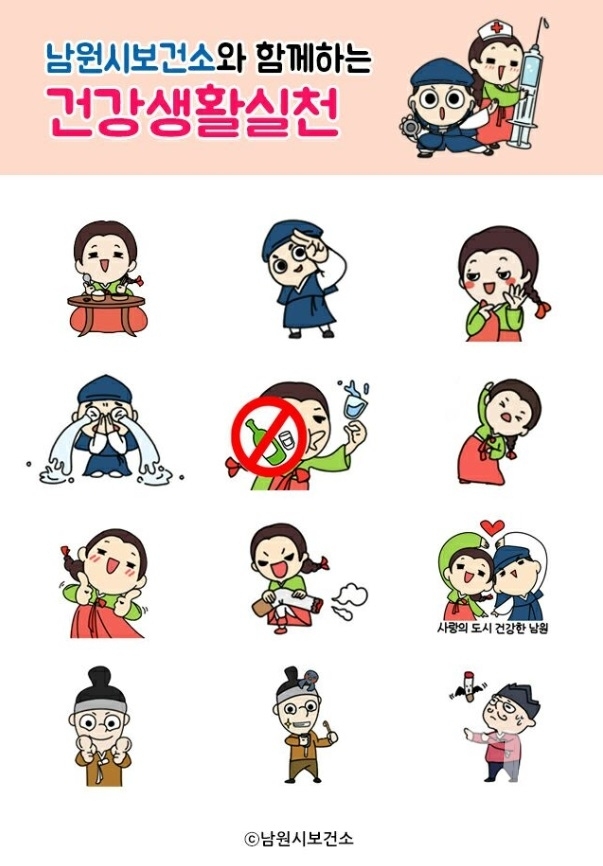 남원시보건소는 이러한 카카오톡을 활용해 무료 이모티콘을 보급함으로서 자연스럽게 건강생활 실천에 대한 관심을 환기시키고 유익한 건강정보도 함께 제공할 예정이다.