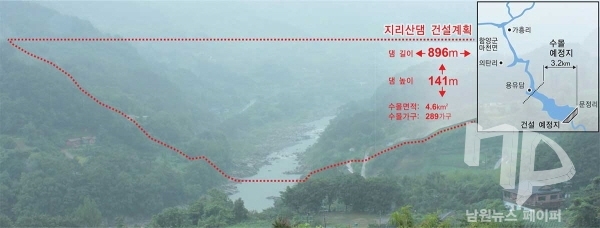 그런데 경남도는 이러한 지리산댐을 식수용 다목적댐으로 변경해 이를 관철시키겠다는 의지를 다지고 있다.