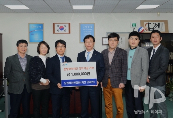 남원시학원연합회(회장 안재찬)가 11일 춘향장학재단에 100만원을 기탁했다.