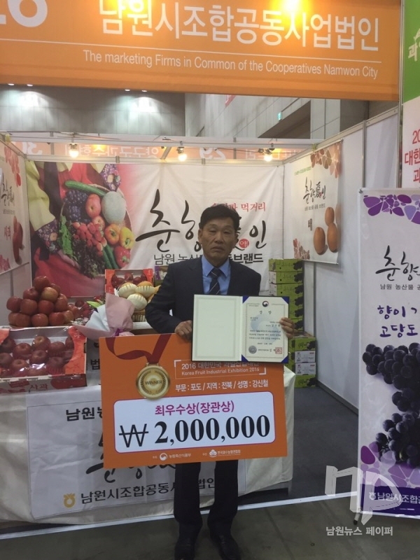 남원시 아영면 강신철(56)씨는 지난 18일 농림축산식품부가 주최한 대한민국 과일 산업대전 과수품질 평가에서 최우수상인 농림축산식품부장관상을 수상했다.