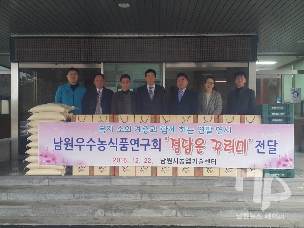 남원우수농식품연구회(대표 소영진) 회원들이 연말연시를 맞아 회원업체에서 생산한 선물꾸러미 70세트를 남원시에 전달했다.