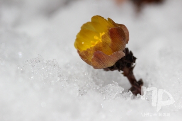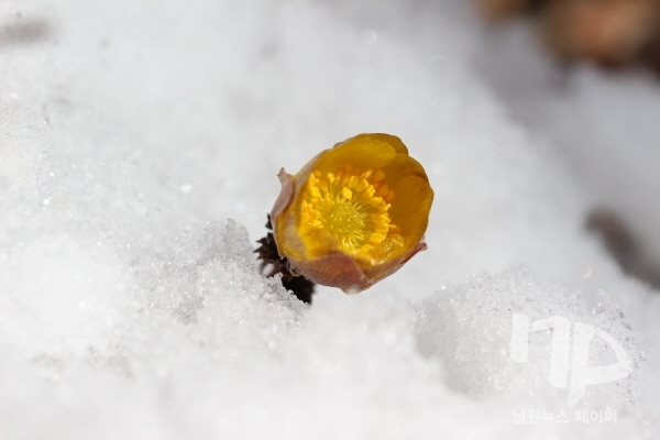지리산국립공원 정령치 일원에서 봄의 전령사 ‘복수초’가 꽃망울을 터트렸다.