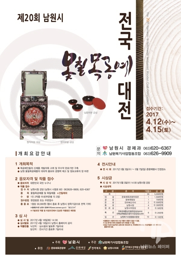 남원시 전국 옻칠목공예대전이 4월에 열린다.