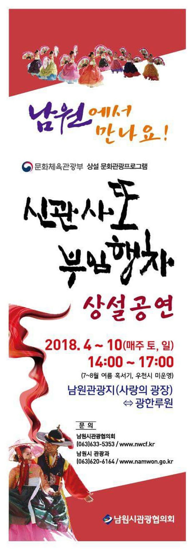 남원시와 남원시관광협의회는 지역자원을 바탕으로 특색있고 집중도 높은 공연을 선보여 남원관광홍보의 주역으로서 시민과 관광객이 함께하는 축제의 한마당이 될 수 있도록 다양성을 추구할 방침이다.