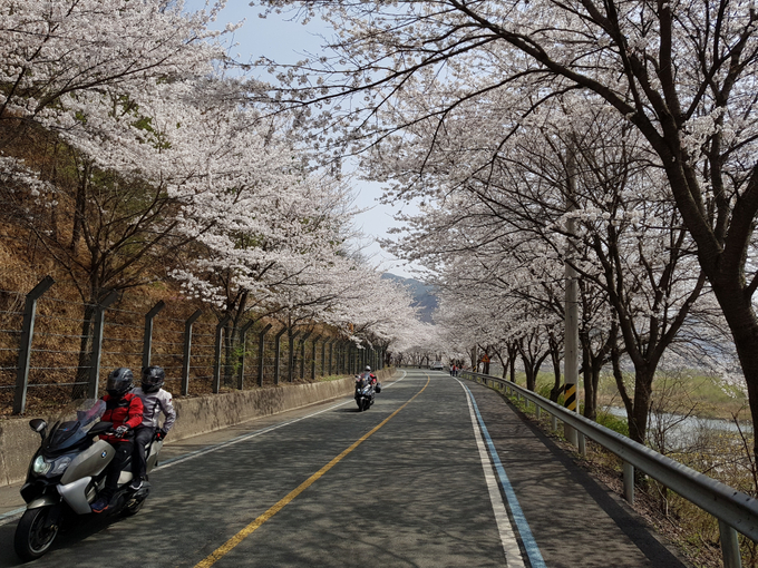 확실하진 않아도 이 지역 벚꽃길을 다 돌려면 어림잡아 편도 300리는 되지 않을까 짐작해 본다. 벚꽃잎이 날리고 있음이 마음 아팠지만, 바람에 스치우는 벚꽃잎이 참으로 아름다웠다. 벚꽃길을 달리면서 아쉬운 건, 이번주면 벚꽃길이 마지막이 아닐까 하는 생각이 들었다.