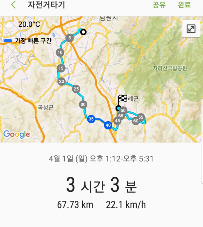 어제 오후 미세먼지 나쁨을 뚫고 약 70키로 벚꽃라이딩을 남원엠티비 동신스캇팀 한라봉과 명환이가 즐겼다.