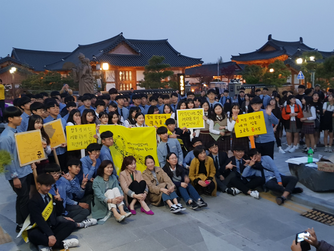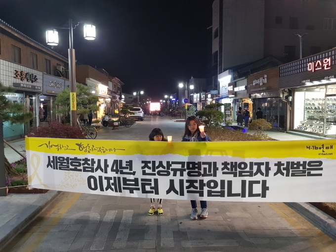 숨쉬기도 미안한 4월, 세월호 4주기 참사 당일인 16일 저녁 6시 50분부터 희생자를 기리는 추모물결이 남원 예촌거리를 가득 메웠다.