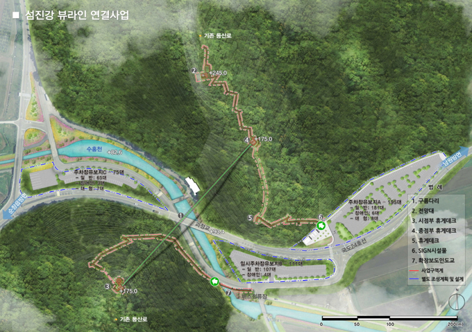 섬진강 뷰라인 연결사업은 순창군 적성면 괴정리에 위치한 채계산 중턱 75~90m지점에 270m 길이 구름다리와 산책로, 모험(어드벤쳐)전망대 1개소를 설치하는 사업이다. 내년까지 국비 34억을 포함해 총 68억원이 투자되며 내년 3월이면 정식 개통할 수 있을 것으로 전망하고 있다.
