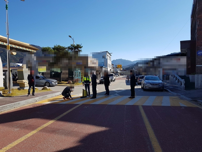 ▲현장 조사를 하고 공사시공업체와 전북지방경찰청, 남원시 관계자./사진=전북경찰청 제공
