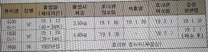 ○ ‘19. 1. 31. 15:00 재채기, 마른기침, 조리원내 격리