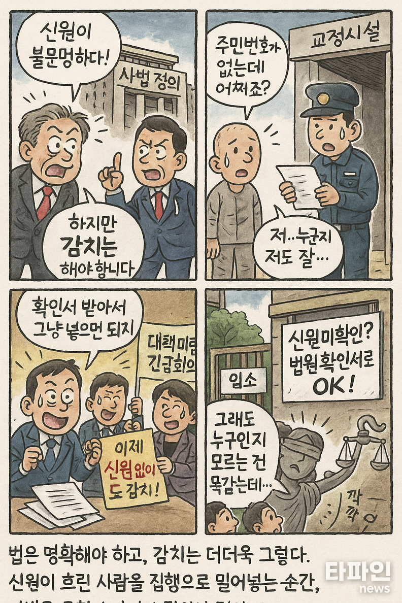 (법무부=타파인) 이상선 기자 = 법무부가 감치 선고자의 신원정보가 일부 누락돼 교정시설 입소가 지연되거나 무산되는 문제를 막기위해 신원 확인 절차를 완화하는 새로운 집행 기준을 마련했다.