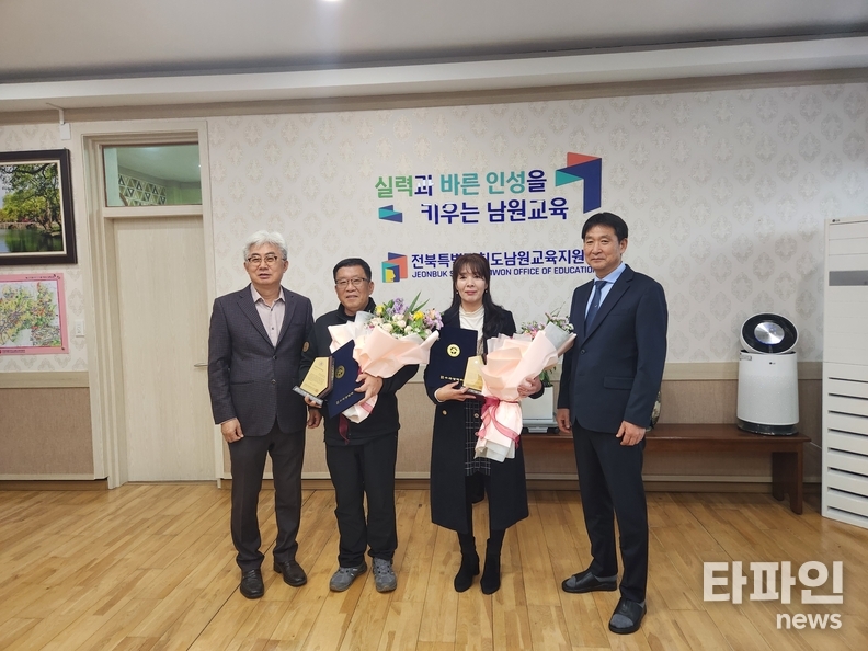 박영수 남원교육지원청 교육장(사진 오른쪽 첫번째)은 “남원교육대상은 지역 교육 발전을 위해 묵묵히 헌신한 분들을 기리는 매우 뜻깊은 상”이라며, “남원교육의 지속적인 성장과 혁신을 위해 최선을 다하겠다”고 말했다.