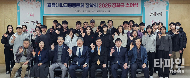 특히 내년 원광대학교와 원광보건대학교가 글로컬대학 선정에 따라 통합을 앞두고 있는 점을 고려해, 원광보건대 재학생 5명도 장학금 대상자에 포함하며 ‘통합 상생’의 의미를 더했다.