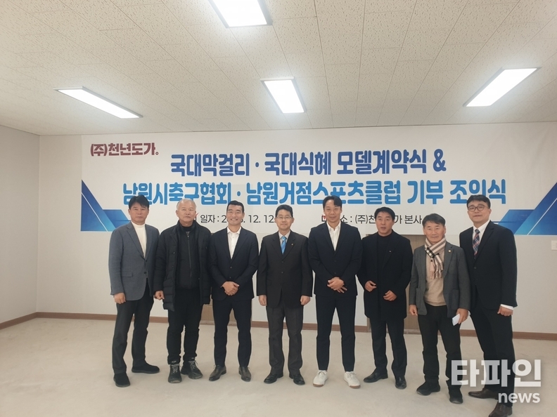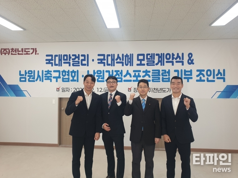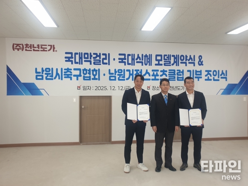 전속 모델 계약 조인식은 12일 남원 본사에서 진행됐다. 이번 계약은 천년도가가 추진 중인 ‘국대 시리즈’ 전국 런칭 전략의 본격 개막전으로, 두 제품은 2026년 3월 1일 정식 출시된다.