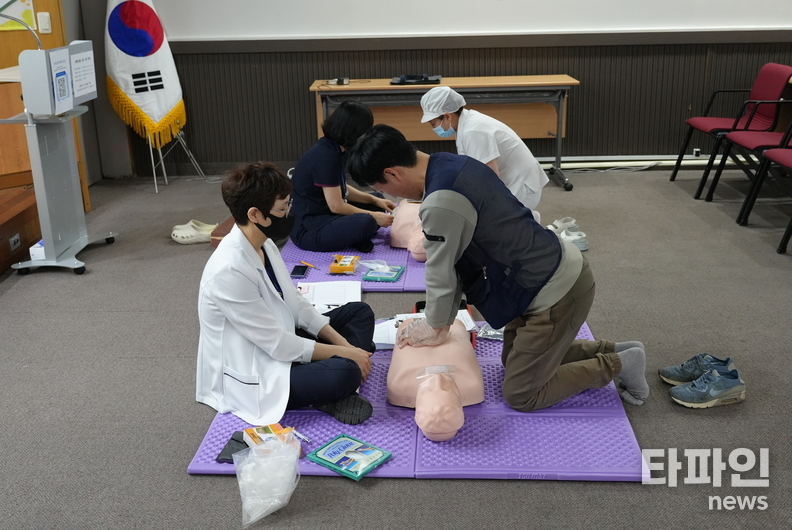 특히 ▲심폐소생술 중요성 ▲응급상황 신고 및 초기 대응 절차 ▲심폐소생술 시연 영상 교육 ▲인체 모형을 활용한 CPR 실습 ▲자동제세동기 사용법 등 실전 중심 프로그램으로 구성돼 교육 효과를 높였다.