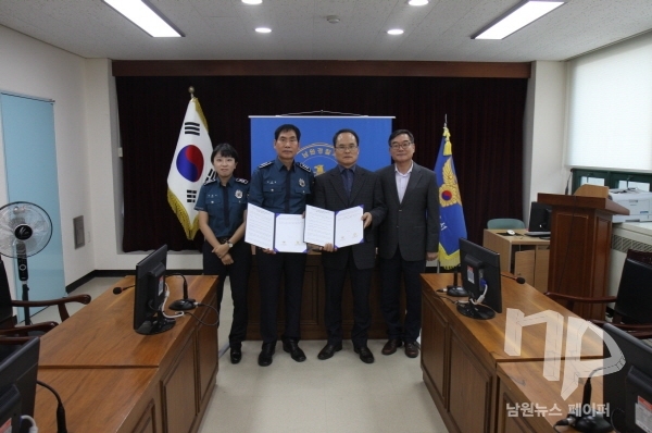 남원경찰서(서장 황종택)와 운봉농협(조합장 서영교)이 4대 사회악 홍보를 위해 12일 업무협약을 맺었다.