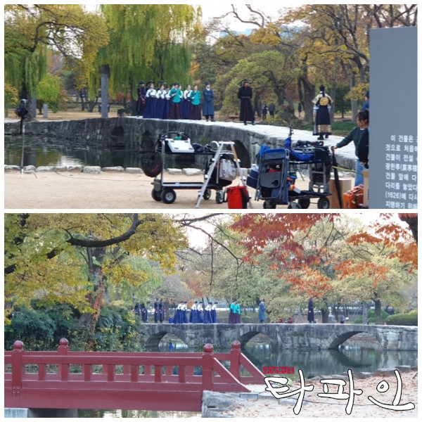 ▲6일 오후 5시 16분께 전북 남원 광한루원 오작교. 내년에 방영될 모 방송국 '왕의 된 남자' 촬영이 진행 되고 있어 만추의 광한루원이 춘향과 이도령의 사랑이 다시금 관심을 받고 있다. '왕의 된 남자'는 여진구, 이세영, 김상경, 권해효, 장 광 등이 출연한다./이상선 기자