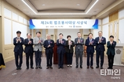 (법무부=타파인) 이상선 기자 = 법조협회는 지난 18일 대법원에서 열린 제24회 법조봉사대상 시상식에서 ‘공익인권센터 함께’(대표 박대영 변호사)를 대상 수상자로 선정하며, 법조계의 숨은 공익 실천자들을 향해 박수를 보냈다. 올해 수상자들은 각자의 자리에서 법률·행정·현장 봉사를 통해 사회적 약자를 지켜온 이들로, ‘기부와 나눔의 법조 문화’를 이끌어온 대표적인 주역들이다. 대법원장을 회장으로 하는 법조협회는 지난 2002년부터 법조봉사대상을 매년 수여하며, 사회적 약자를 향한 성실한 헌신과 인권 보호 활동을 이어온 법조인·법조공무원들을 격려하고 있다. 공익인권센터 함께’(대표 박대영 변호사)는 노숙인·학교 밖 청소년·미혼모 등 사회적 약자를 위한 법률상담·인권 교육·무료 법률구제·배식 봉사·공익소송은 물론, 공익·인권영화 상영과 북 콘서트, 무변촌 변호사 파견 등 9년 넘게 사각지대를 메우는 공익 활동을 지속해온 공로로 대상의 영예를 안았다. 황승수 법무사는 경기중앙지방법무사회 회장으로서 저소득층 성금·이불 지원, 수원구치소 불우수용자 교화기금 기증, 다문화가정 2세 대상 법무교육, 경력단절 여성 재취업 교육 등 평생을 ‘실천하는 법조인’으로 살아온 공로