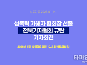 (사회=타파인) 이상선 기자 = 성폭력 가해 전력으로 사회적 논란을 빚은 인물이 제50대 전북기자협회장으로 선출된 데 대해 시민사회가 공개 행동에 나선다. 14일 전북민주언론시민연합은 오는 19일 오전 10시 전북도의회 앞에서 ‘성폭력 가해자 협회장 선출 전북기자협회 규탄 기자회견’을 열고 협회장의 즉각 사퇴와 전면적인 자성을 촉구한다고 밝혔다. 전북민주언론시민연합은 이번 사태가 “300여 명의 기자를 대표하는 단체의 수장으로서 요구되는 최소한의 윤리 기준을 스스로 무너뜨린 결정”이라며, 지난 7일 시민사회단체들과 공동성명을 통해 사퇴를 요구했음에도 협회장이 “같은 사안이 다시 거론되는 데 유감을 표한다”는 입장만을 내놓고 책임 있는 거취 표명을 하지 않았다고 지적했다. 시민사회는 전북기자협회가 스스로 내세워 온 ‘자정운동’과 ‘언론개혁’이 이번 선출로 공허한 구호에 그쳤다고 비판했다. 전북기자협회는 한국기자협회 산하의 지역 최대 언론 단체로, 지역 여론 형성과 권력 감시라는 공적 책무를 지닌 조직이라는 점에서 협회장의 도덕성은 누구보다 엄격해야 한다는 주장이다. 공동성명은 이번 선출을 “언론 윤리의 실종이자 기자 정신의 퇴행”으로 규정했다. 한국기자협회 윤