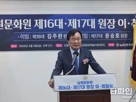 (남원=타파인) 이상선 기자 = 남원문화원이 지난 3일 남원문화예술지원센터에서 제15·16대 및 제17대 문화원장 이·취임식을 개최했다. 이날 행사에는 최경식 시장을 비롯해 지역 기관·단체장과 문화원 회원 등 200여 명이 참석해 남원문화원의 새로운 출발을 축하했다. 이·취임식은 개회식을 시작으로 공로패 및 감사패 전달, 이임사, 취임사 순으로 진행됐다. 지난 2018년부터 8년간 남원문화원을 이끌어 온 김주완 원장의 노고를 기리는 자리도 함께 마련됐다. 김 전 원장에게는 문화원 발전과 지역문화 진흥에 기여한 공로를 인정해 공로패가 전달됐으며, 함께 헌신해 온 전 임원진에게도 공로패와 감사패가 수여됐다. 김 전 원장은 이임사에서 “오랜 숙원사업이었던 문화원사 건립을 위해 기반을 마련하고자 노력했지만 임기 내 완전한 결실을 맺지 못하고 용역 추진 단계에 머문 점은 아쉬움으로 남는다”며, “지난 8년 동안 남원문화원의 희로애락을 회원들과 함께 나눈 시간은 제 인생에서 무엇과도 바꿀 수 없는 소중한 기억”이라고 말했다. 이날 제17대 문화원장으로 공식 취임한 윤승호 원장은 지난 3월 18일 단일후보로 등록해 제61차 정기총회에서 회원들의 지지를 받아 추대됐다. 윤