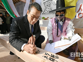 (남원=타파인) 이상선 기자 = 남원시가 지난 3일 한옥전통호텔 ‘명지호텔’ 상량식을 열고 내년 4월 개관을 목표로 본격적인 마감 공사에 착수했다. 명지호텔은 광한루원 일대 관광벨트 확장의 핵심 시설로, 지역 고유의 멋과 한옥 미학을 담은 고품격 숙박공간으로 조성된다. 이번 상량식은 건물 골조가 완성된 뒤 마룻대를 올려 무사 준공과 번영을 기원하는 전통의식으로, 관리동에서 진행됐다. 대지면적 2,060㎡, 연면적 455㎡ 규모에 총 6개 객실을 갖춘 이 호텔은 외래 관광객에게 남원의 전통문화를 체험할 수 있는 새로운 숙박 명소로 자리매김할 전망이다. 특히 이날 행사에서는 최경식 남원시장이 직접 상량문을 작성하는 장면이 눈길을 끌었다. 상량문 양쪽에는 전통대로 ‘용(龍)’과 ‘귀(龜)’자를 쓰고, 무사 완공과 번영을 기원하는 문구가 더해졌으며, 소리꾼의 상량 소리에 맞춰 마룻대가 올려지며 고사는 마무리됐다. 최경식 시장은 “명지호텔은 남원의 문화·관광 경쟁력을 한 단계 끌어올릴 중요한 시설”이라며, “안전하고 훌륭한 완공을 위해 끝까지 최선을 다하겠다”고 말했다. 총사업비 57억 원이 투입된 명지호텔은 준공 후 민간위탁 방식으로 운영될 예정이며, 운영자 공개