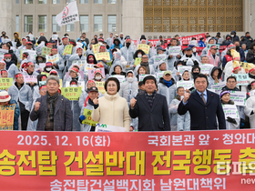 (남원=타파인) 김진주 기자 = 남원시의회가 정부를 향해 칼끝을 겨눴다. 초고압 송전선로 건설을 둘러싼 갈등이 임계점을 넘어서며, 남원시민의 분노가 수도권 중심 정책을 향해 정면으로 터져 나왔다. 17일 남원시의회에 따르면 지난 16일 국회 앞 김영태 의장은 “초고압 송전선로는 남원의 미래를 송두리째 흔드는 재앙이다"면서 "시민의 생존권 앞에서 우리는 한 걸음도 물러서지 않겠다"고 말했다. 이날 집회는 ‘용인 반도체 국가산업단지 재검토 및 초고압 송전탑 건설 반대 전국행동’ 출범식이었다. 환경운동연합, 전국농민총연맹, 에너지정의행동 등 50여 개 단체 천여 명이 결집했고, 남원시의회는 그 한가운데 서 있었다. 김한수 부의장, 소태수·이숙자 의원도 함께 상경해 남원시민의 의지를 중앙에 전달했다. 남원시의회의 분노는 남원에 초고압 송전탑을 세워 수도권 산업단지로 전력을 보내겠다는 논리다. 그러나 그 과정에서 지역 안전·환경·정주 기반은 돌이킬 수 없는 파괴를 맞게 된다. 김영태 의장은 이번 사안을 두고 “이는 명백한 지역 차별이자 구조적 불평등”이라며, 정부 정책을 정면으로 비판했다. 그는 “남원은 더 이상 희생양이 아니다"며, "수도권 전력 공급을 위해 지방을