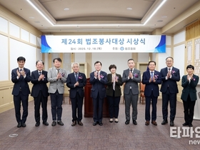 (법무부=타파인) 이상선 기자 = 법조협회는 지난 18일 대법원에서 열린 제24회 법조봉사대상 시상식에서 ‘공익인권센터 함께’(대표 박대영 변호사)를 대상 수상자로 선정하며, 법조계의 숨은 공익 실천자들을 향해 박수를 보냈다. 올해 수상자들은 각자의 자리에서 법률·행정·현장 봉사를 통해 사회적 약자를 지켜온 이들로, ‘기부와 나눔의 법조 문화’를 이끌어온 대표적인 주역들이다. 대법원장을 회장으로 하는 법조협회는 지난 2002년부터 법조봉사대상을 매년 수여하며, 사회적 약자를 향한 성실한 헌신과 인권 보호 활동을 이어온 법조인·법조공무원들을 격려하고 있다. 공익인권센터 함께’(대표 박대영 변호사)는 노숙인·학교 밖 청소년·미혼모 등 사회적 약자를 위한 법률상담·인권 교육·무료 법률구제·배식 봉사·공익소송은 물론, 공익·인권영화 상영과 북 콘서트, 무변촌 변호사 파견 등 9년 넘게 사각지대를 메우는 공익 활동을 지속해온 공로로 대상의 영예를 안았다. 황승수 법무사는 경기중앙지방법무사회 회장으로서 저소득층 성금·이불 지원, 수원구치소 불우수용자 교화기금 기증, 다문화가정 2세 대상 법무교육, 경력단절 여성 재취업 교육 등 평생을 ‘실천하는 법조인’으로 살아온 공로