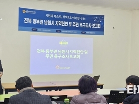 (=타파인) 최종민 기자 = 따뜻한소통협동조합이 주관한 ‘전북 동부권 남원시 지역사회 현안 문제와 시민 욕구에 대한 심층조사 결과 보고회’가 지난 23일 남원시사랑나눔어울림센터에서 지역 인사 40여 명이 참석한 가운데 열렸다. 이번 보고회에서는 남원시민 300명을 대상으로 약 1개월간 진행된 설문조사 결과를 바탕으로 지역 발전 방향에 대한 시민들의 목소리가 공유되었다. 지역경제 침체 심각, 인구 유출 주된 원인으로 지목 조사 결과에 따르면, 남원시민 대다수는 전반적인 생활에 대해 긍정적이거나 중립적으로 평가했지만, 지역사회의 구조적 문제에 대한 위기감은 큰 것으로 나타났다. 또한, 시민들이 가장 불편함을 느끼거나 개선이 필요하다고 응답한 분야는 지역경제(20.7%), 일자리(16.7%), 의료복지(15.7%) 순이었다. 특히 지역경제 침체의 주된 원인으로는 '인구 유출'(45.0%)이 가장 많이 꼽혔으며, 해결을 위한 최우선 정책으로는 '창업 및 일자리 지원'(43.0%)이 요구되었다. 아울러 '청년층뿐만 아니라 중장년층, 노년층까지 포괄하는 맞춤형 일자리 지원 체계 구축이 필요하다'는 의견이 제시되었다. 주민 참여 및 공동체 신뢰도 낮아... 경제적 자립이