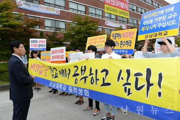 서남대학교는 의예과 신입생 모집 정지 효력정지 가처분신청이 법원으로부터 받아들여져 신입생을 모집하게 됐다. 또 지난 2일 임시이사 8명 전원이 참가한 가운데 대학정상화 방안을 심도 있게 논의했다. 서남대 임시이사회는 오는 18일 새로운 총장을 선출해 총장을 중심으로 학교 정상화를 도모하기로 했다. 남원시는 전북도, 정치권, 시민단체와 함께 서남대 정상화에 힘을 더하고 있다.