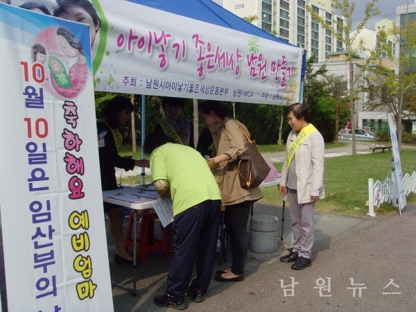 이번 캠페인은 전 시민을 대상으로 아이낳기좋은세상운동본부 남원시지부와 남원시보건소가 공동으로 개최한다.