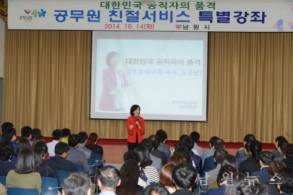 14일 남원시(시장 이환주)는 전체 공무원을 대상으로 친절서비스 특별 강좌를 개최했다고 밝혔다.