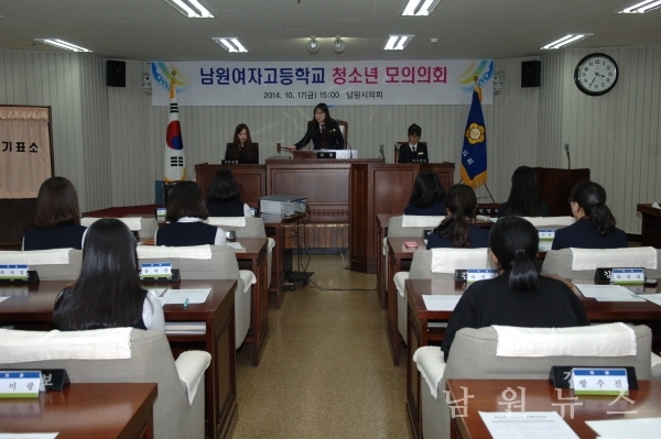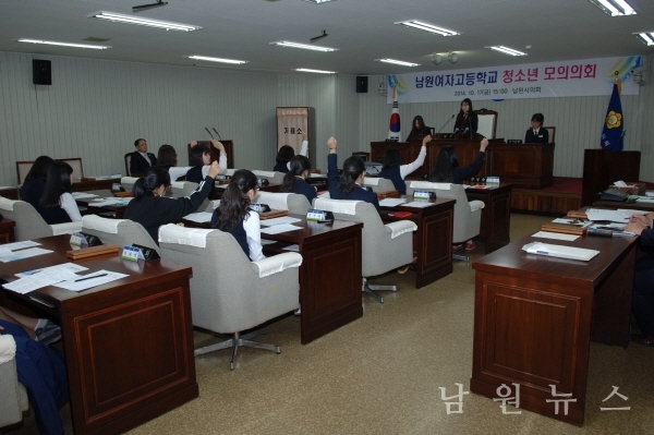 17일 남원시의회(의장 장종한)는 남원여자고등학교 학생들을 대상으로 청소년 모의의회를 개최했다.