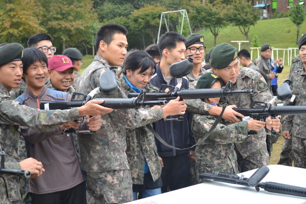22일 병영 체험에 나선 강모(33. 여)씨는 “군복도 입고 총도 쏘고 정말 군인이 된 것 같아요”라며 즐거운 표정을 지었다.