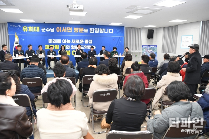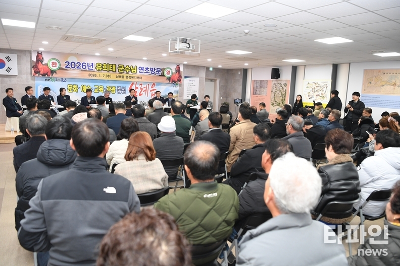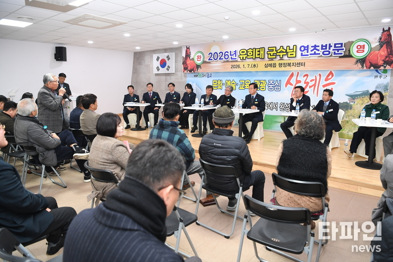 유 군수는 관광과 교통, 미래산업을 축으로 한 지역별 맞춤형 발전 구상을 제시하며, 2026년 군정 운영의 큰 틀과 주요 정책 방향을 주민들 앞에서 직접 설명했다.