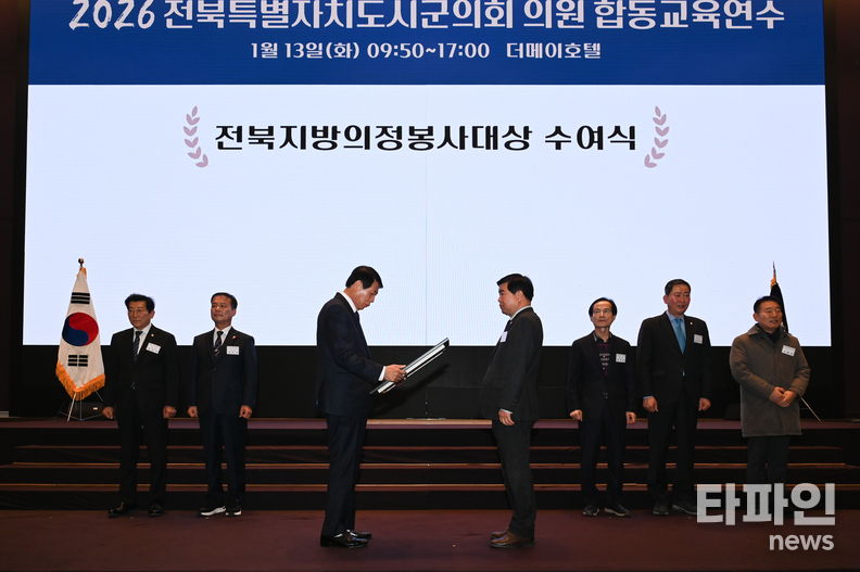 김 의장은 13일 전주에서 열린 2026 전북자치도 시·군의회 의원 합동교육 연수에서 전북지방의정봉사대상을 수상했다.