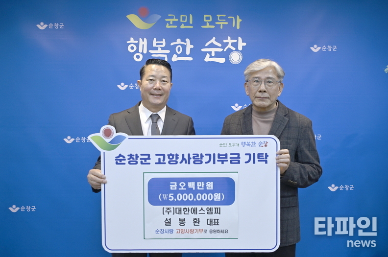 지역 연대를 상징하는 고향사랑기부도 이어졌다. 전기공사·태양광 발전 전문기업 ㈜대한에스엠피의 설봉환 대표가 고향사랑기부금 500만 원을 기탁했다.