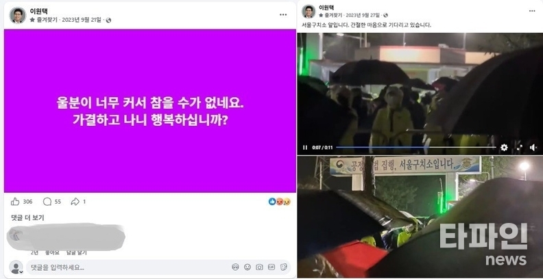 이어 “당시 야당 대표를 향한 정치검찰의 무리한 수사 속에서 체포동의안이 가결됐고, 저는 의총장에서 분노를 표출하기도 했다”며, “제 페이스북에도 당시 심정을 분명히 밝힌 바 있다”고 설명했다.