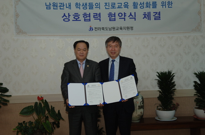 남원시의회와 교육지원청은 학생들의 꿈과 끼를 키우고 진로 설계에 도움을 주기 위한 남원진로직업체험지원센터 운영 업무협약(MOU)을 체결했다고 5일 밝혔다.