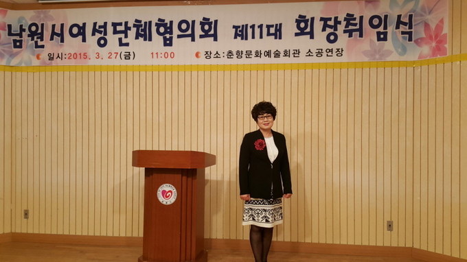 한편 남원시여성단체협의회는 남원지역 13개 여성단체 3,000명을 대표하는 단체로 이날 취임한 정정화 회장은 오는 2017년 2월까지 활동하게 된다.