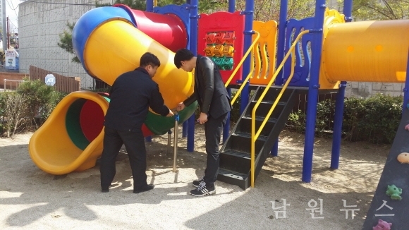 지난 4월14일(화)에는 국민안전처 안전관리기관에서 나온 전문가와 각 부서 담당직원들 합동으로 남원시 관내 어린이 놀이시설 중 8개소에 대한 합동 안전점검이 있었다.