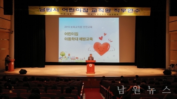 남원시는 지난 18일 토요일 춘향문화예술회관에서 보육교직원 500명을 대상으로 ‘2015년도 보육교직원 직무교육’을 실시하였다.