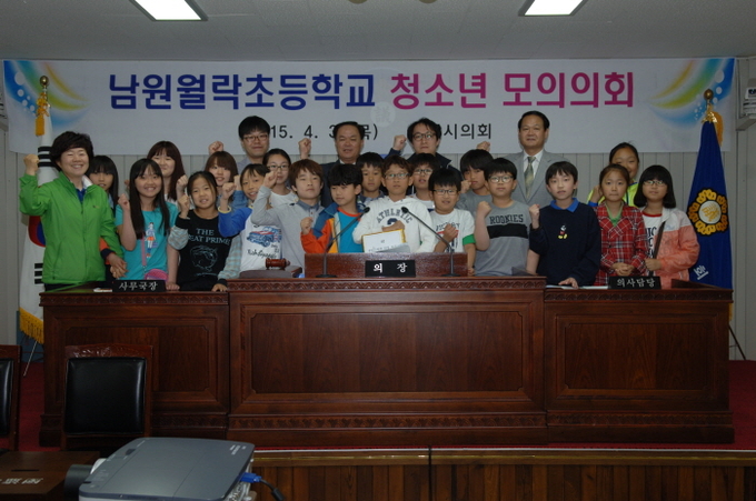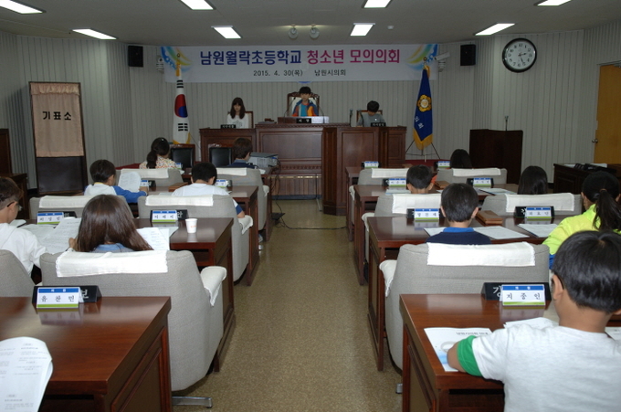 이날 월락초등학교 학생 20여명을 대상으로 지방의회의 역할 및 기능을 설명하고 학생들이 자율적으로 의장 선출과 회기결정 및 안건 상정 처리의 전 과정을 직접 체험하는 내용으로 청소년 모의의회는 남원시의회 본회의장에서 진행 됐다.