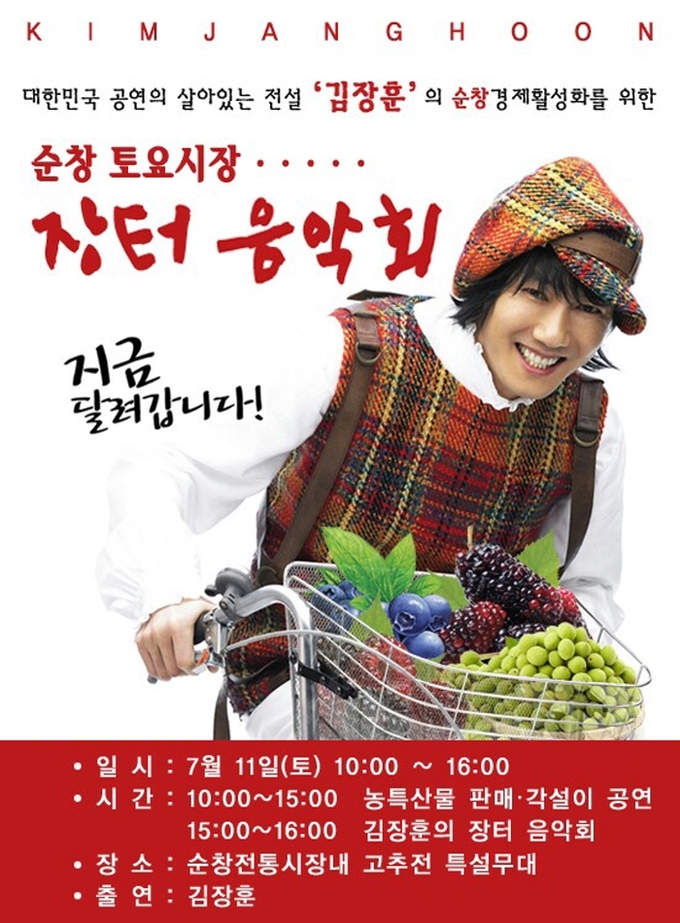 가수 김장훈이 함께 참여하는 ‘힘내라 순창경제 토요시장 장터음악회’가 오는 11일 순창전통시장 특설 무대에서 열린다.